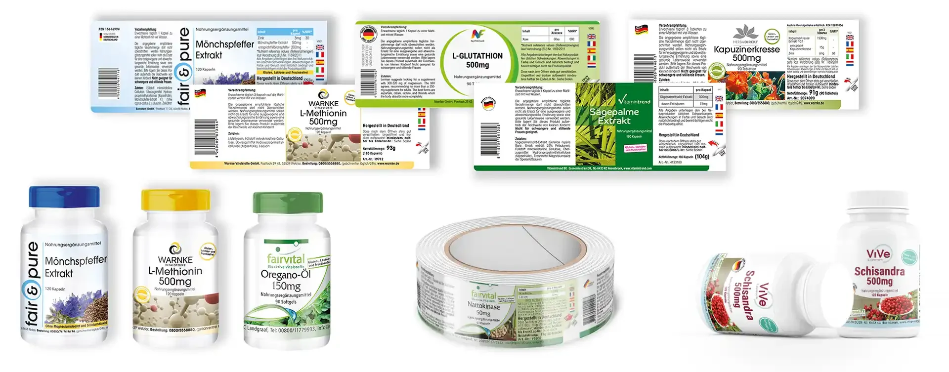 Wir bieten Ihnen auch Etiketten oder Verpackungsdesign für Ihre Produkte